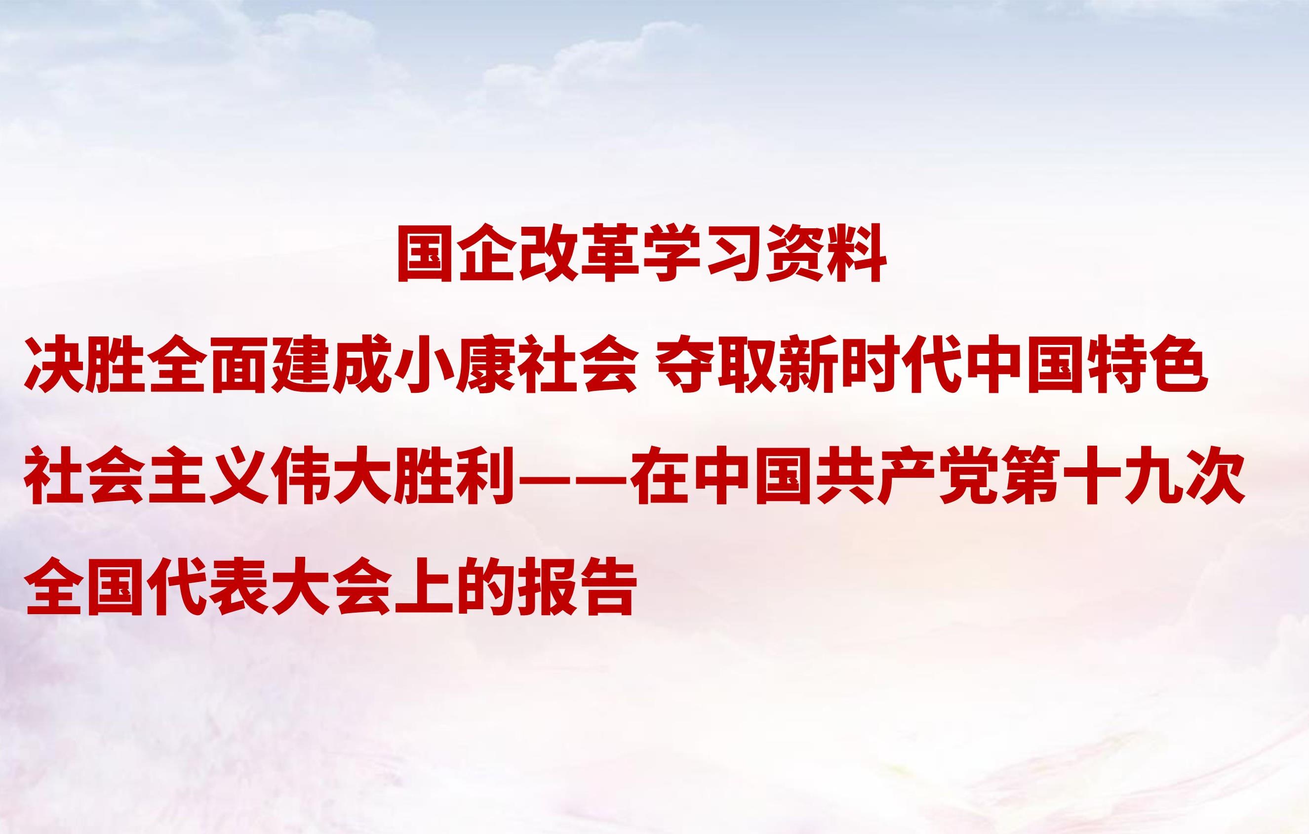¹úÆóË¢ÐÂѧϰ×ÊÁÏ ¡ª¡ª¾öʤÖÜÈ«½¨³ÉС¿µÉç»á ÕùÈ¡ÐÂʱ´úÖйúÌØÉ«Éç»áÖ÷Òåΰ´óʤÀû ¡ª¡ªÔÚÖйú¹²²úµ³µÚÊ®¾Å´ÎÌìÏ´ú±í´ó»áÉϵı¨¸æ
